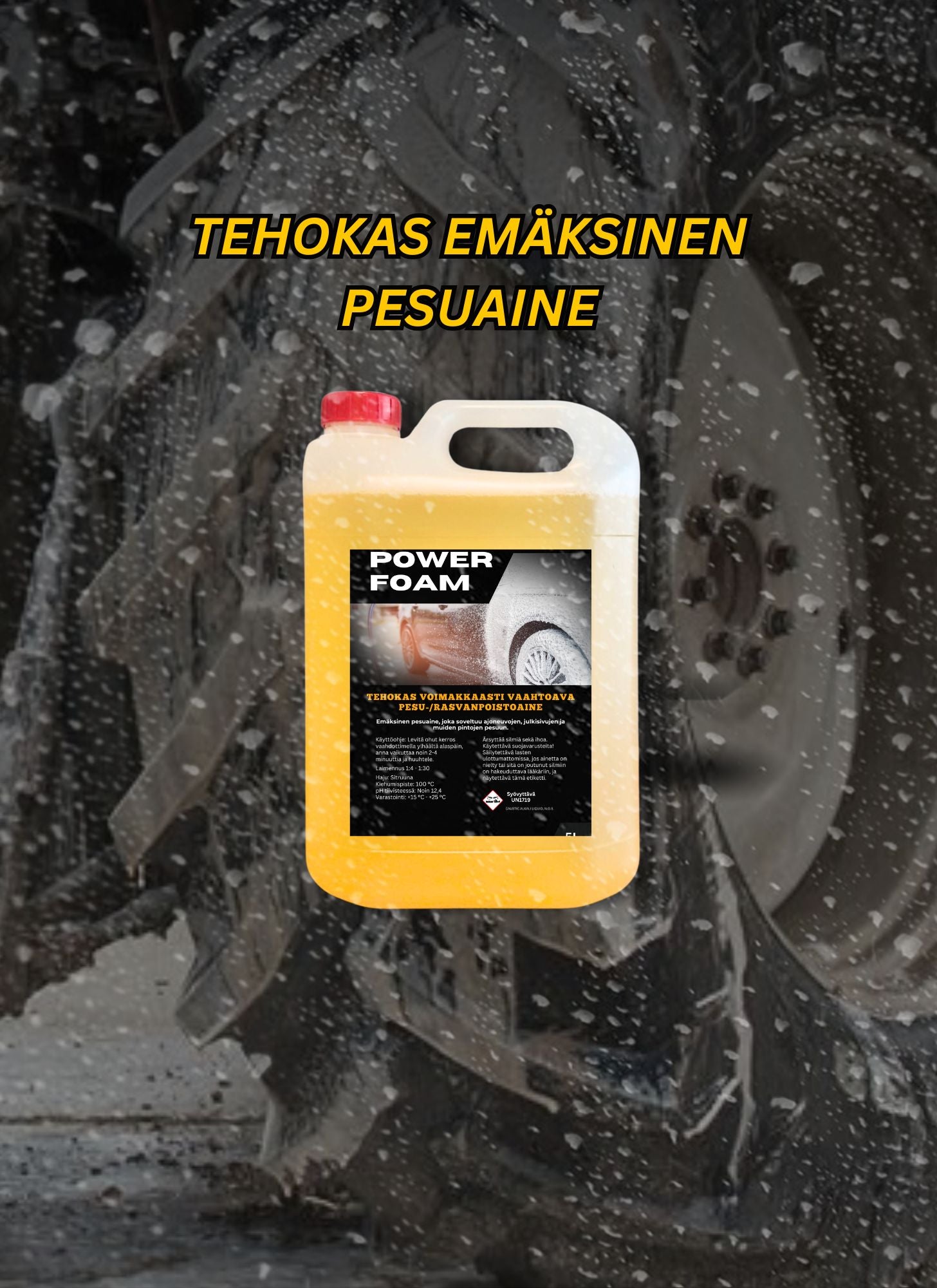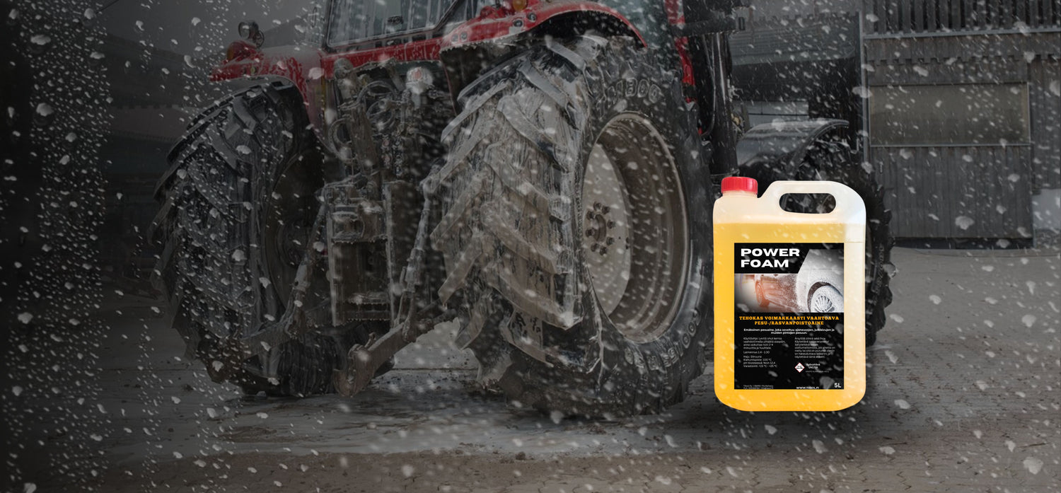 Power Foam sopii erinomaisesti raskaampien koneiden ja suurempien ajoneuvojen pesuun!